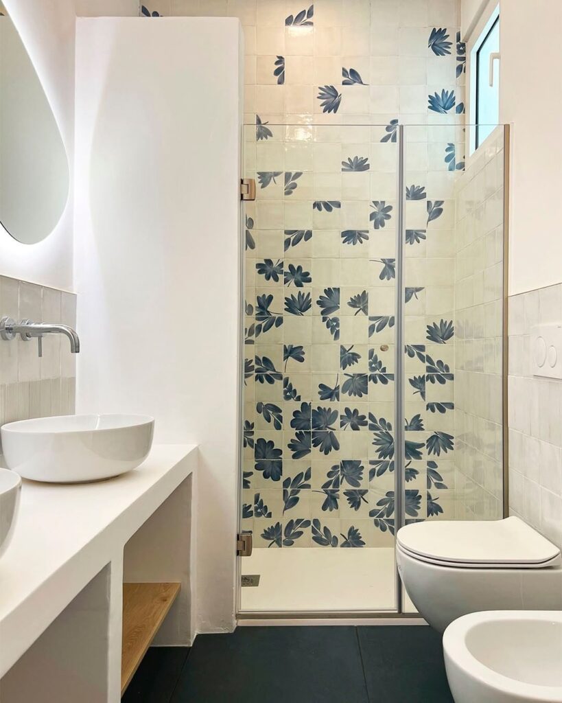 On les adopte désormais sur un mur d’accent, au plancher ou à l’intérieur d’une douche en alcôve, pour créer un point focal raffiné. En 2026, les motifs géométriques aux lignes douces, les motifs inspirés du zellige réinventé, les dessins floraux stylisés (mais pas kitsch), et les textures artisanales (comme des carreaux texturés façon ciment ou des reliefs en 3D subtils) seront en vedette. Ces choix s’inscrivent entre le décor décoratif et le minimalisme, exactement dans l’esprit d’un design de salle de bain moderne avec personnalité.